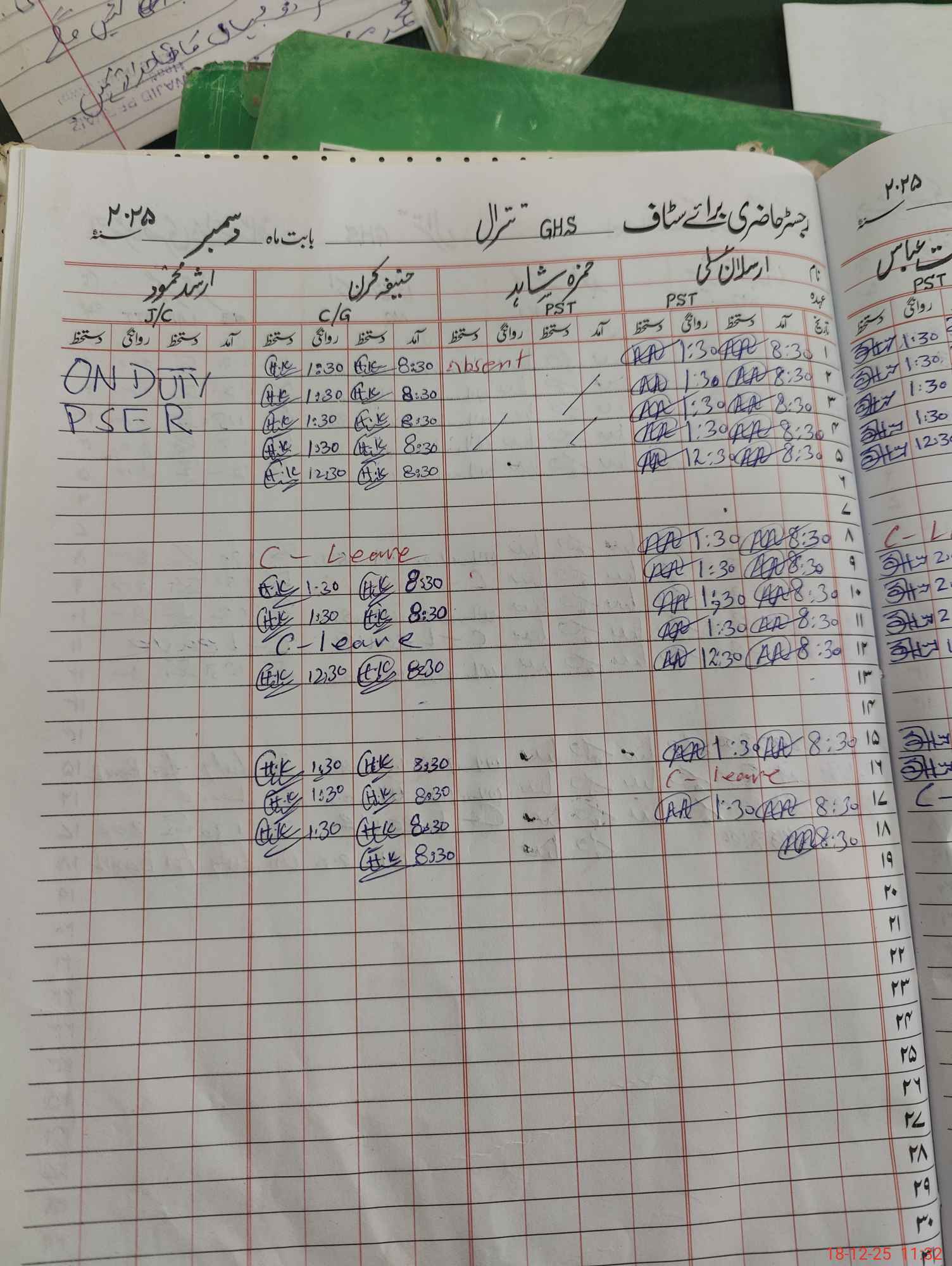 | CNIC | Full Name | Designation | R/C | Absence during last cal. month |