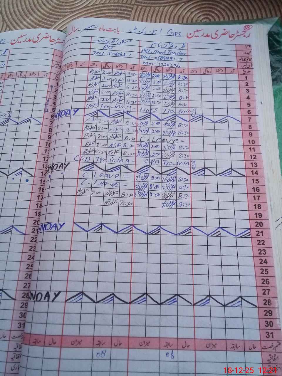 | Name: MU**** Az**** Designation: (School Headmaster's/Headmistress's) PST Phone/Cell Number: 03**** |