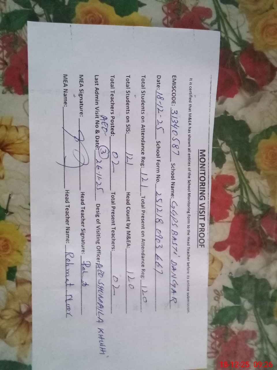| EMIS Code: 31340587 | Name of School: GGPS BASTI DANGAR | |||