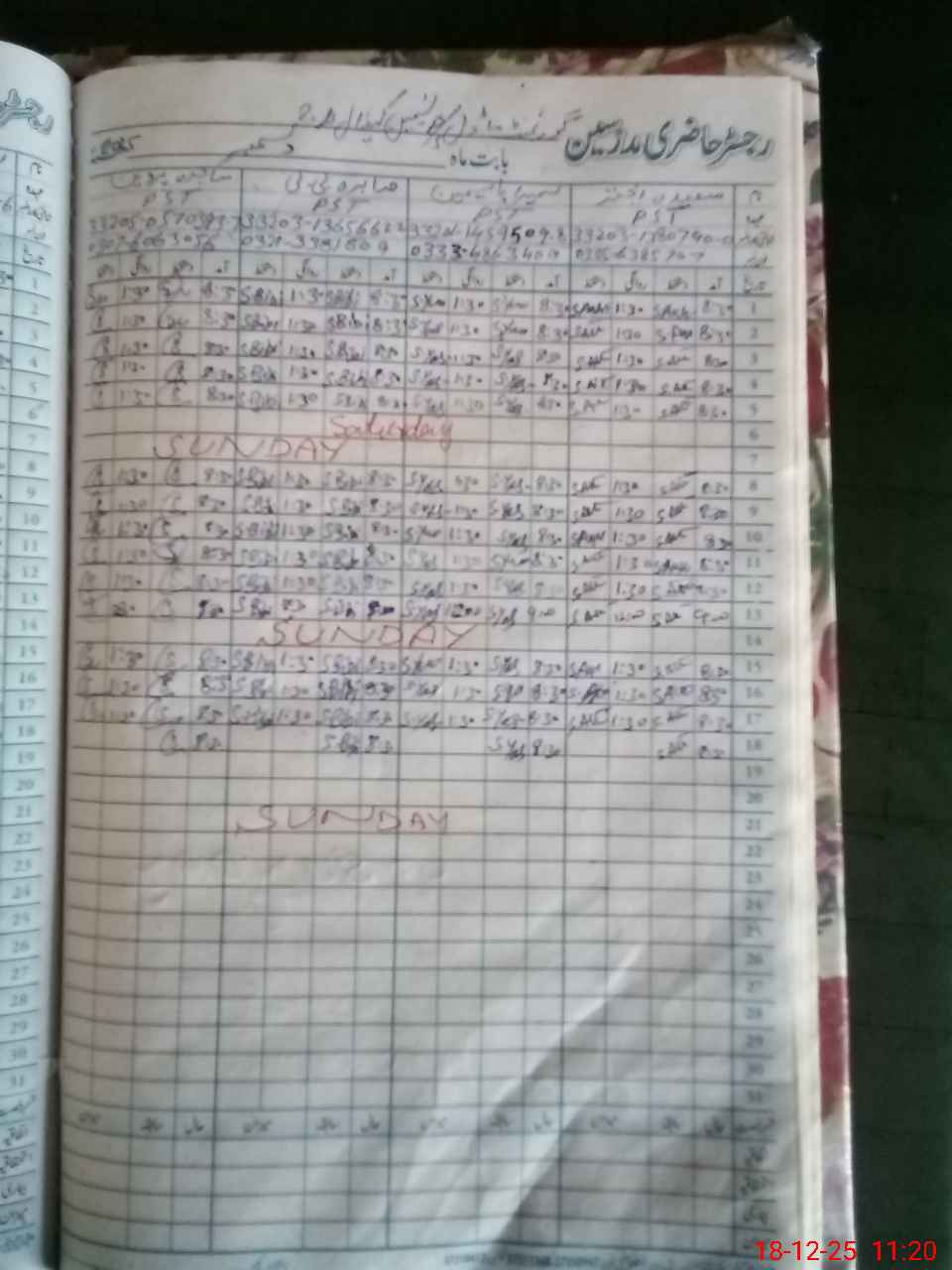 | CNIC | Full Name | Designation | R/C | Absence During Last Calender Month |