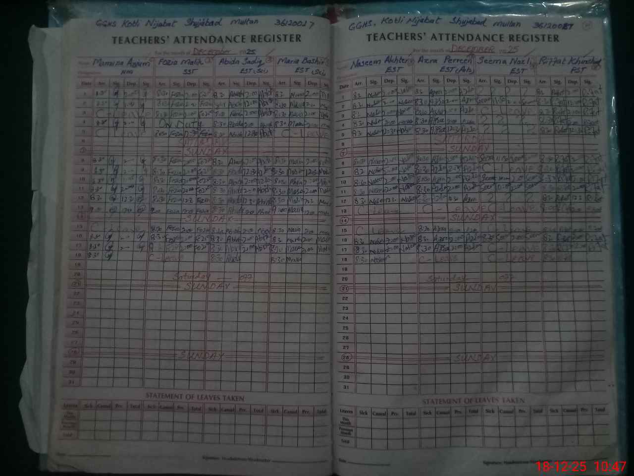| 36**** | Fo**** Ma**** | SST Science | Regular | 0 | 0 | 0 | 0 | 0 | 0 | 0 | 0 | 0 | Casual |