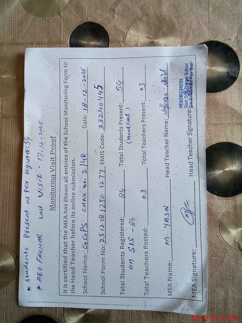 | EMIS Code: 33240445 | Name of School: GGPS CHAK NO. 2/4-R | |||