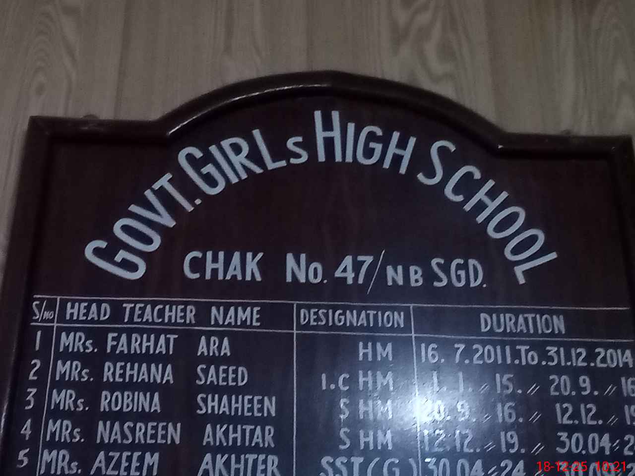 | EMIS Code: 38420187 | Name of School: GGHS CHAK NO.47 NB | |||
