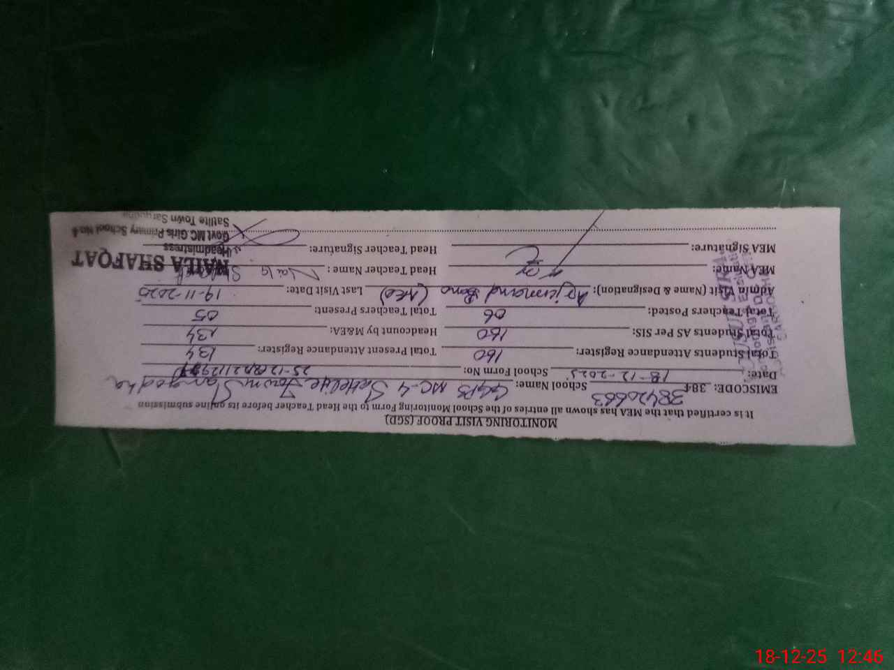 | EMIS Code: 38420663 | Name of School: GGPS MC NO.4 SATTELITE TOWN SARGODHA | |||