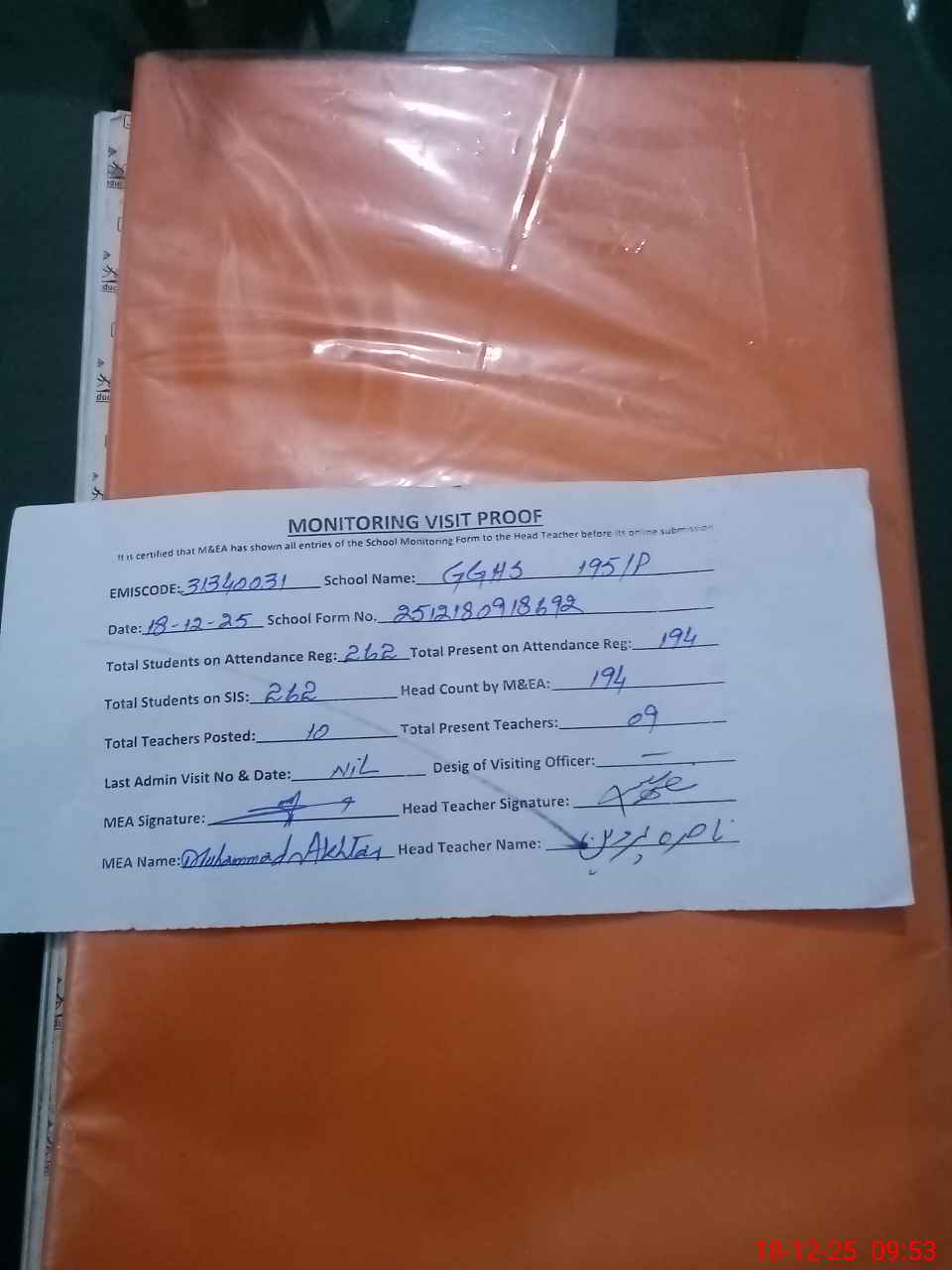 | EMIS Code: 31340031 | Name of School: GGHS CHAK NO. 195/P | |||