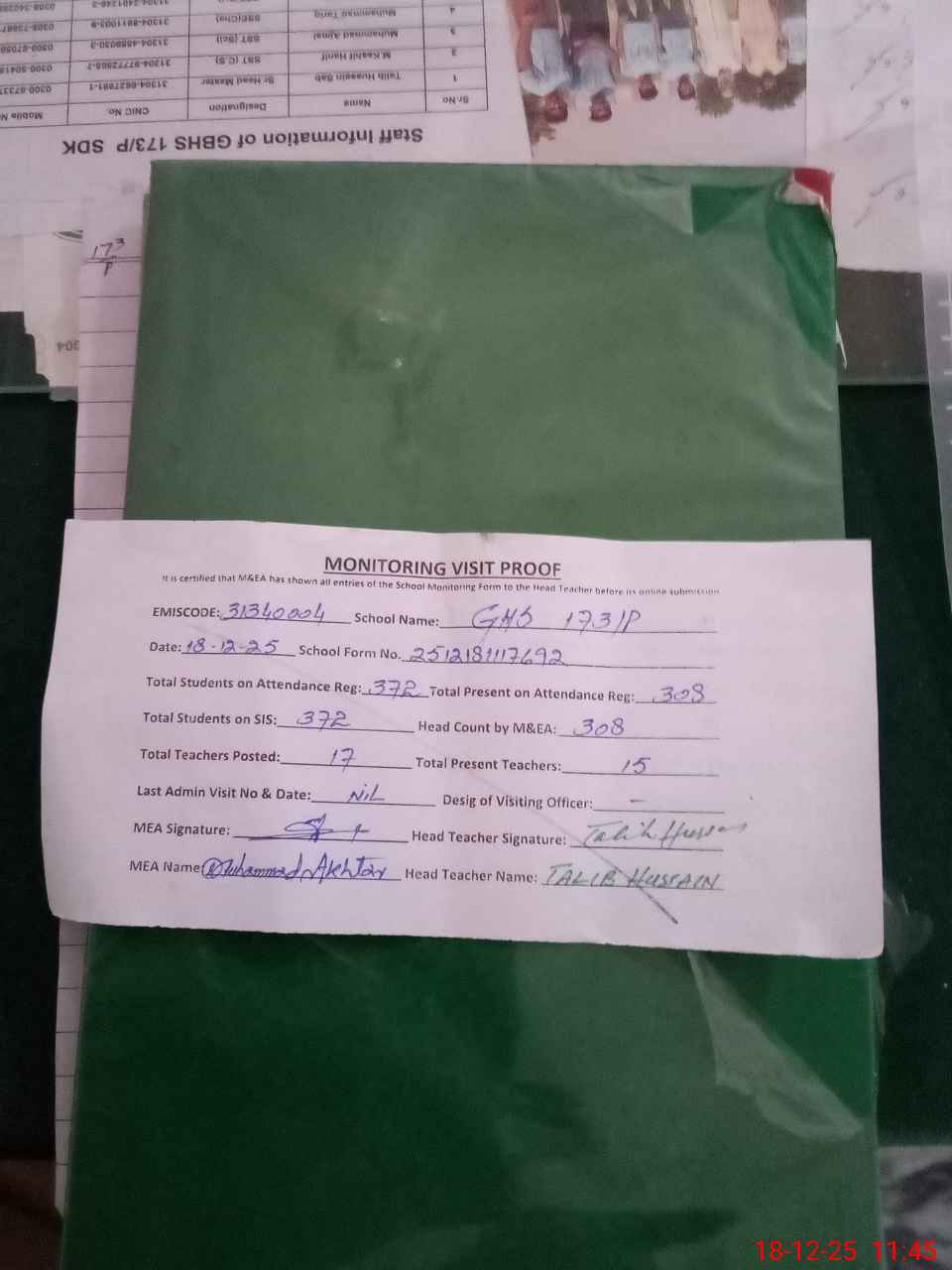 | EMIS Code: 31340004 | Name of School: GHS CHAK 173/P | |||