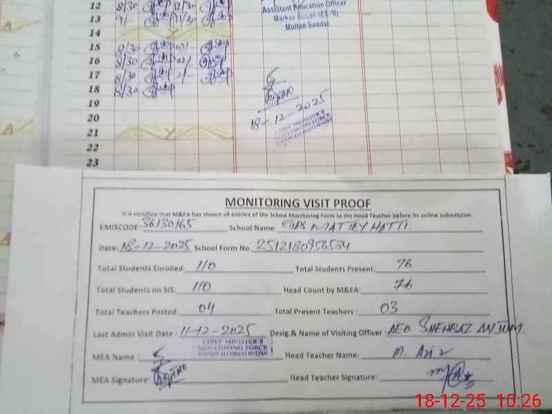 | EMIS Code: 36130165 | Name of School: GPS MATTEY HATTI | |||