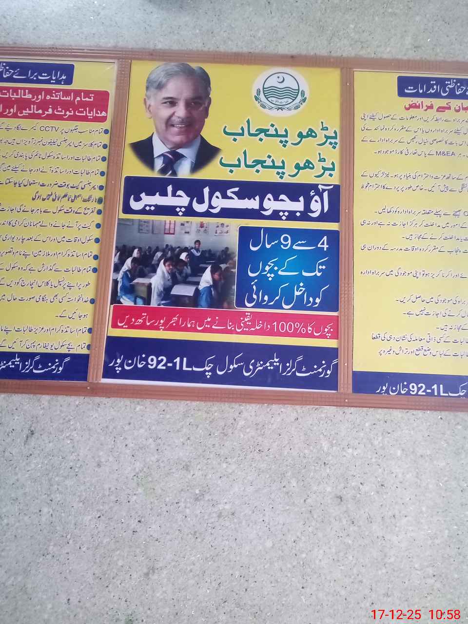 | EMIS Code: 31310580 | Name of School: GGES CHAK NO.92/1-L | |||