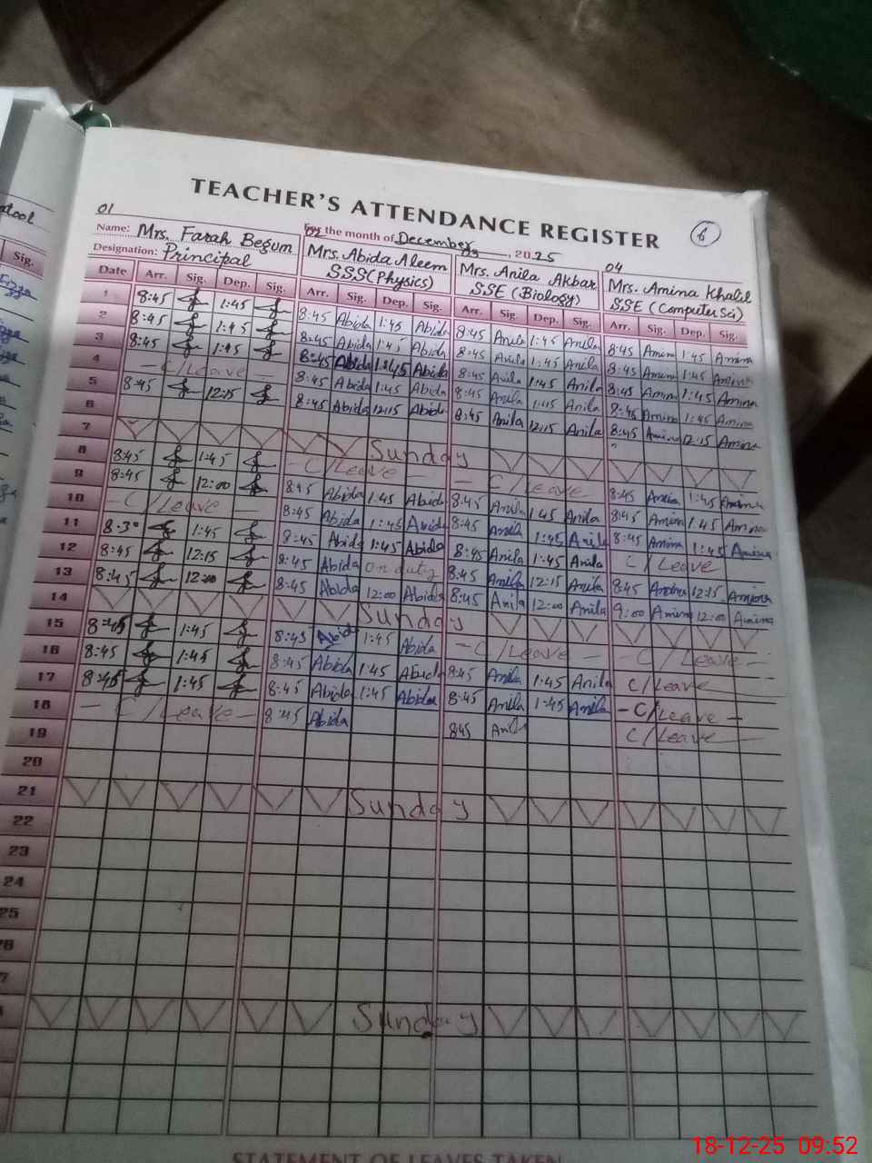 | 35**** | Fa**** Be**** | PRINCIPAL | Regular | 0 | 0 | 0 | 0 | 0 | 0 | 0 | 0 | 0 | Casual |