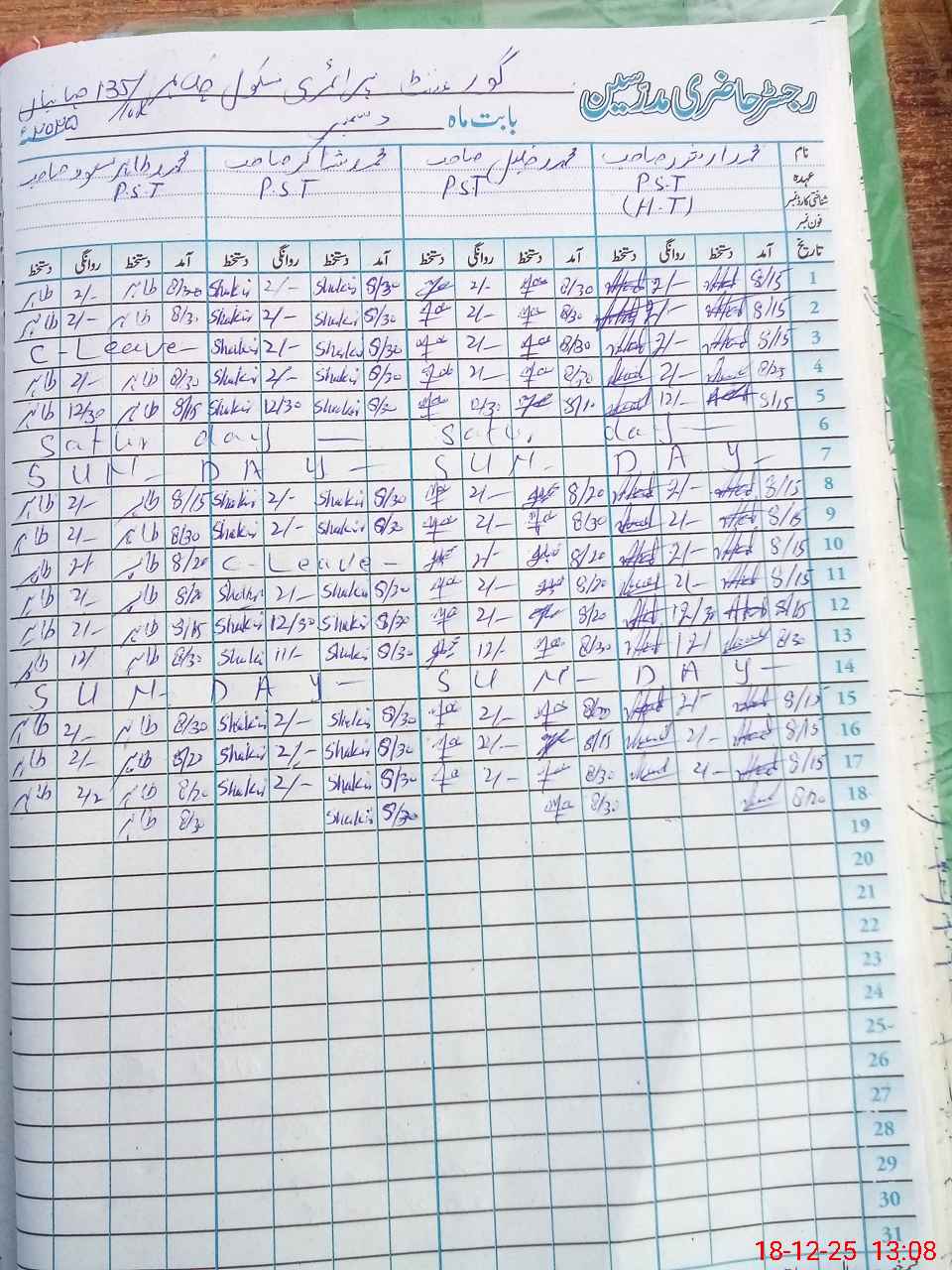 | CNIC | Full Name | Designation | R/C | Absence During Last Calender Month |