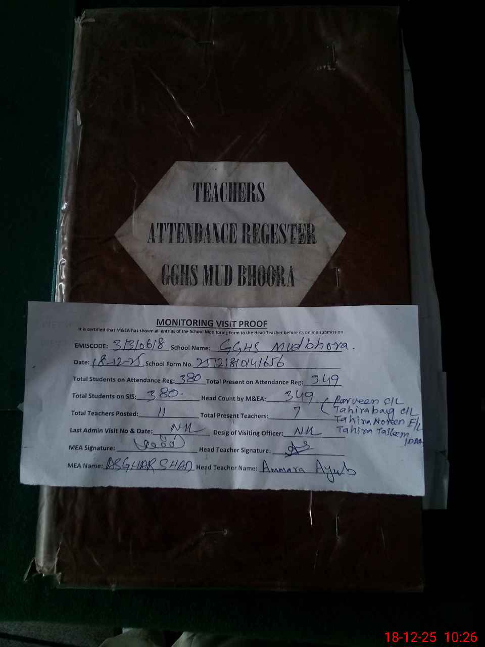 | EMIS Code: 31310618 | Name of School: GGHS MUD BHOORA | |||
