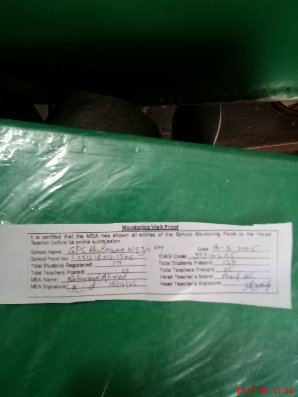 | EMIS Code: 39310265 | Name of School: GPS PHULER WAN WAZIR KE | |||