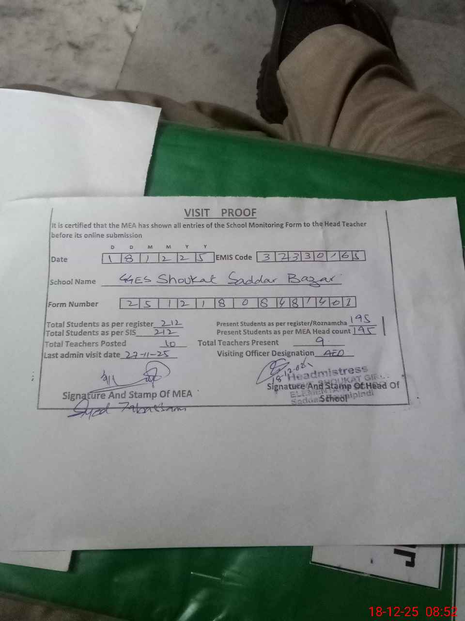 | EMIS Code: 37330165 | Name of School: GGES SHOUKAT SADDAR BAZAR | |||