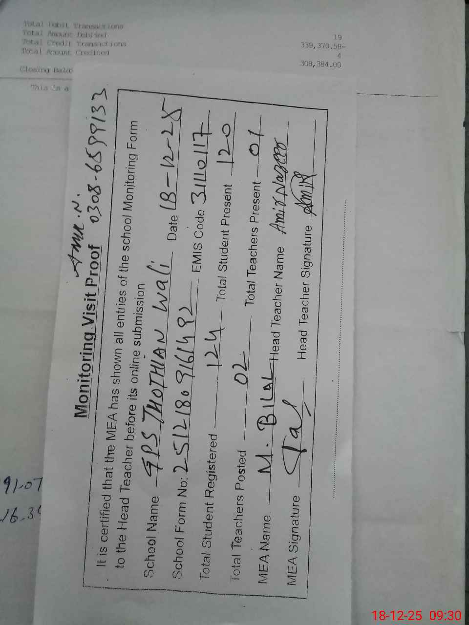 | EMIS Code: 31110117 | Name of School: GPS THOTHIAN WALI | |||