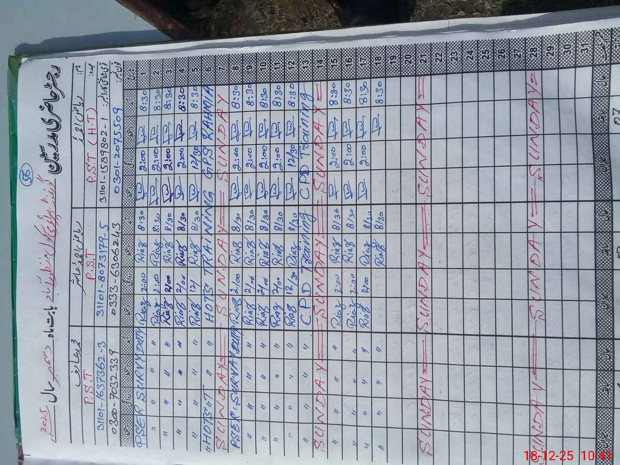 | Name: RI**** AH**** Designation: (School Headmaster's/Headmistress's) PST Phone/Cell Number: 03**** |