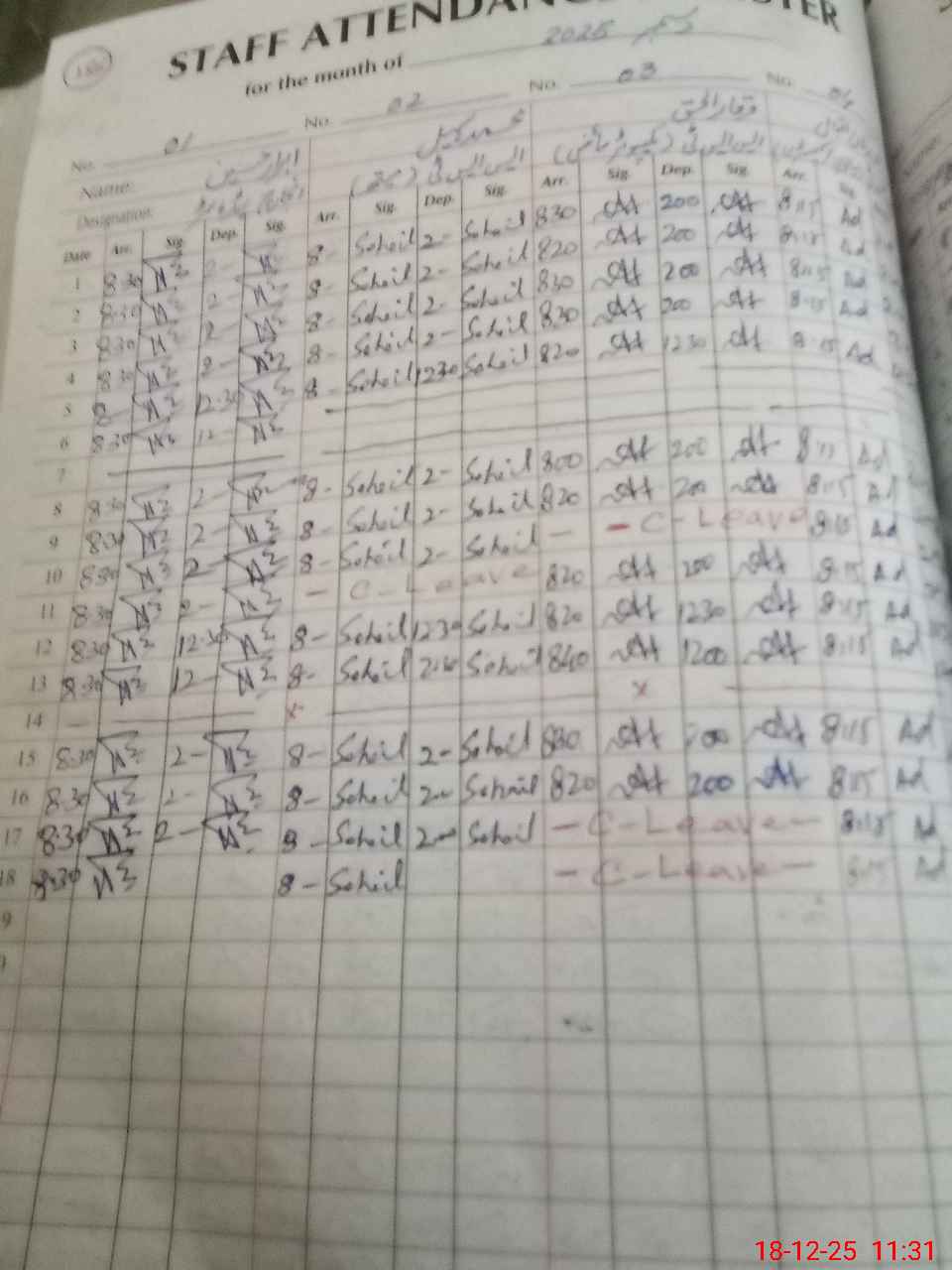 | CNIC | Full Name | Designation | R/C | Absence During Last Calender Month |