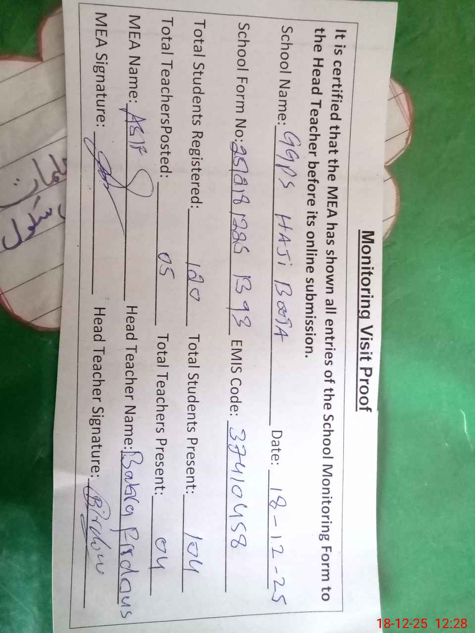 | EMIS Code: 37410458 | Name of School: GGPS HAJI BOOTA | |||