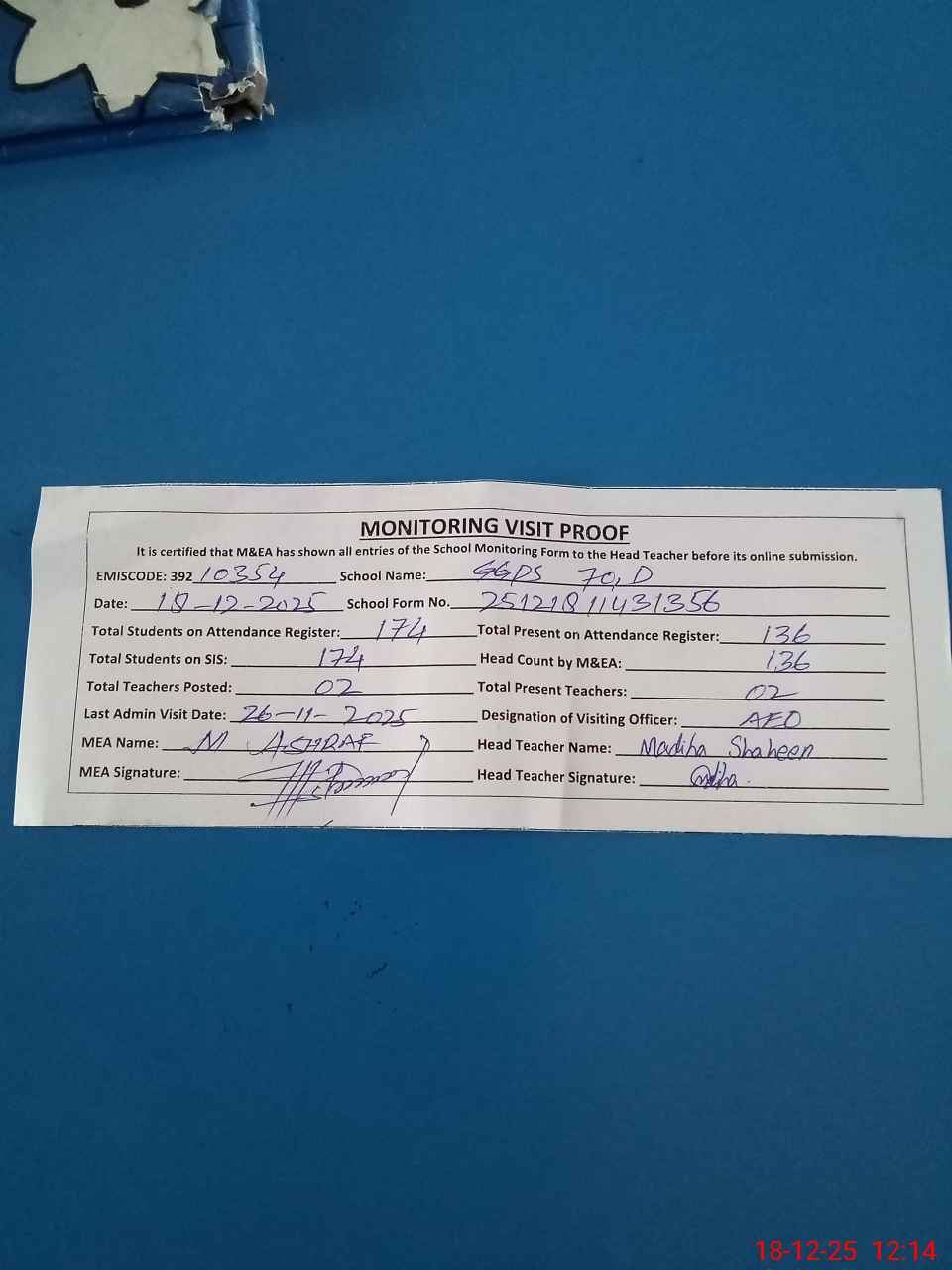 | EMIS Code: 39210354 | Name of School: GGPS 70 D | |||