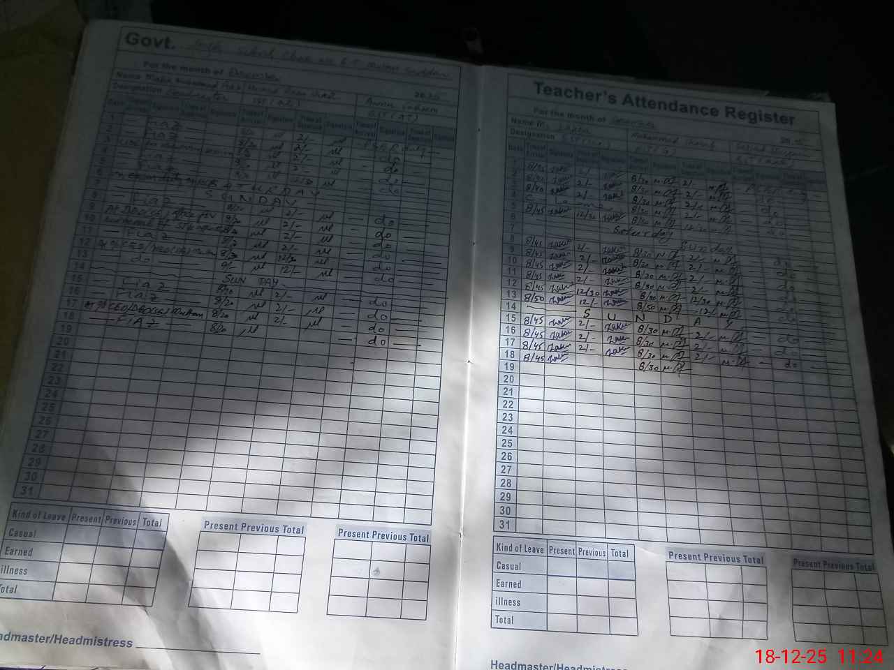 | CNIC | Full Name | Designation | R/C | Absence During Last Calender Month |