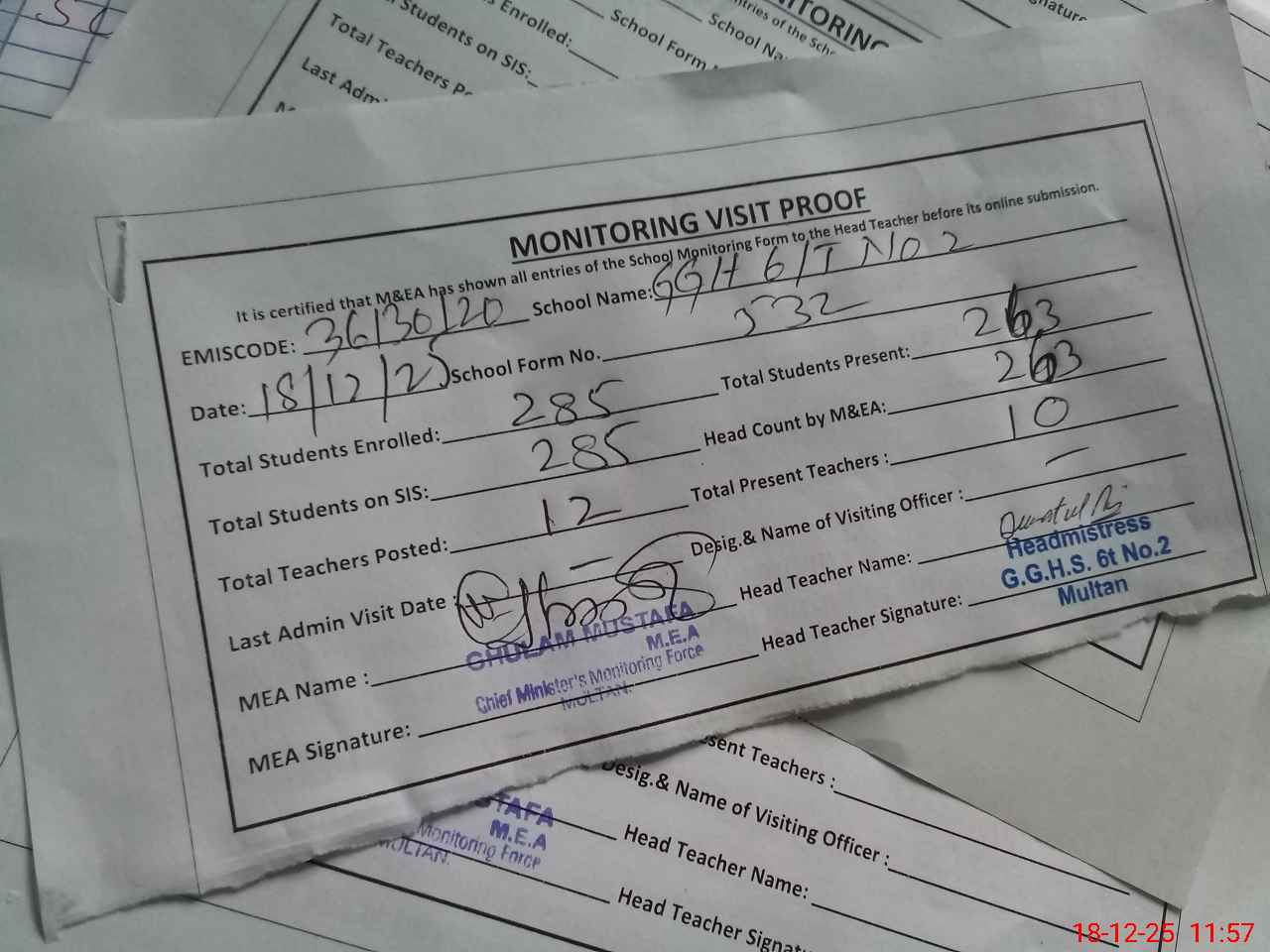| EMIS Code: 36130120 | Name of School: GGHS 6-T NO. 2 P/O MAKHDOOM RASHEED | |||