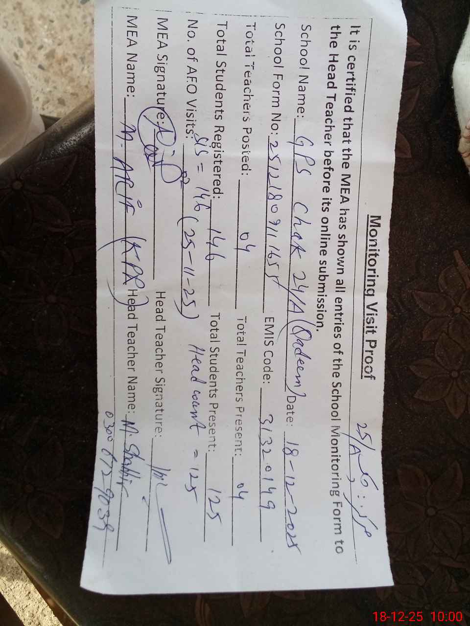 | EMIS Code: 31320149 | Name of School: GPS 24/A QADEEM | |||