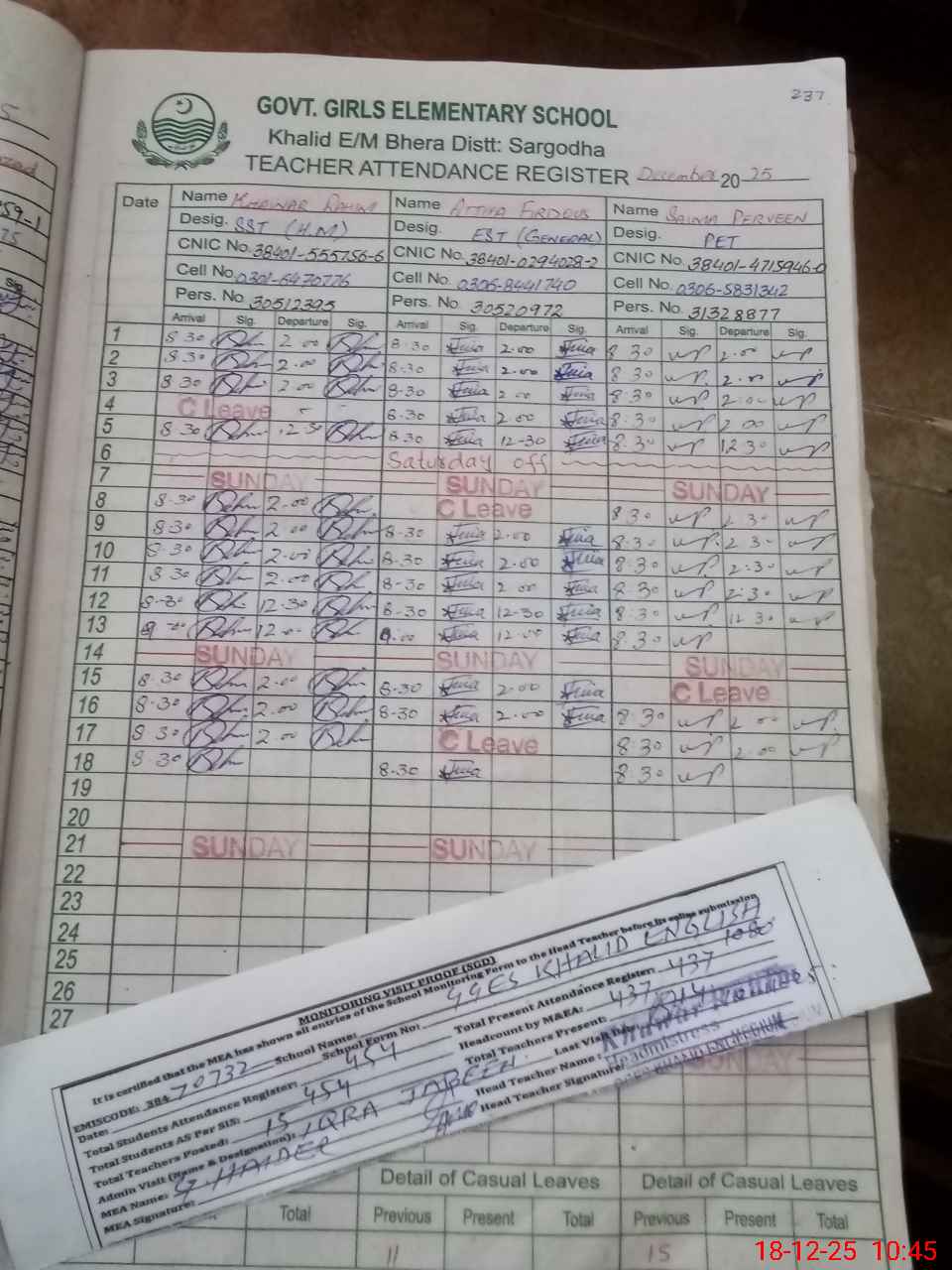 | Name: Kh**** Ra**** Designation: (School Headmaster's/Headmistress's) SST (Arts) Phone/Cell Number: 03**** |