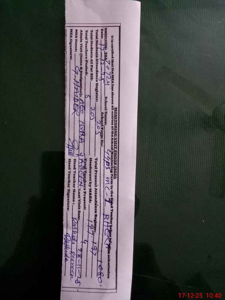 | Certified that this School was Inspected by the Undersigned MEA/DMO Today and the Information Stated Above is as Per Record. | |||||