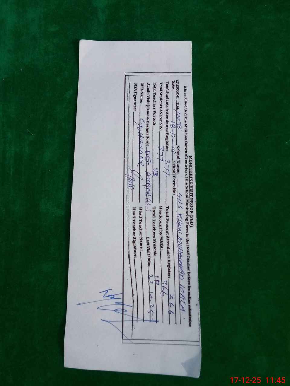 | EMIS Code: 38470033 | Name of School: GHS KHAN MUHAMMAD WALA | |||