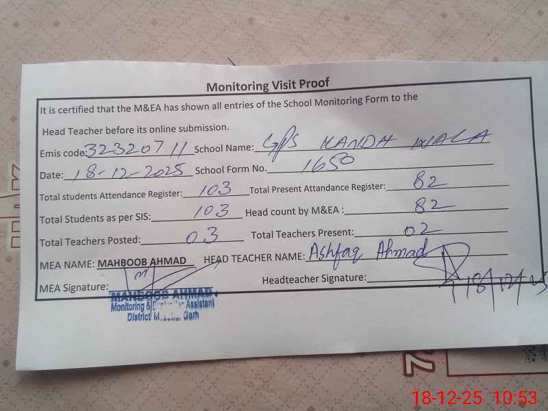 | EMIS Code: 32320711 | Name of School: GPS KANDH WALA | |||