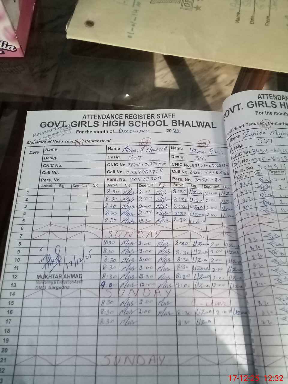 | Name: MU**** NA**** Designation: (School Headmaster's/Headmistress's) Incharge Phone/Cell Number: 03**** |