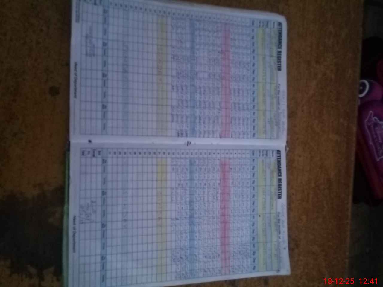 | CNIC | Full Name | Designation | R/C | Absence During Last Calender Month |