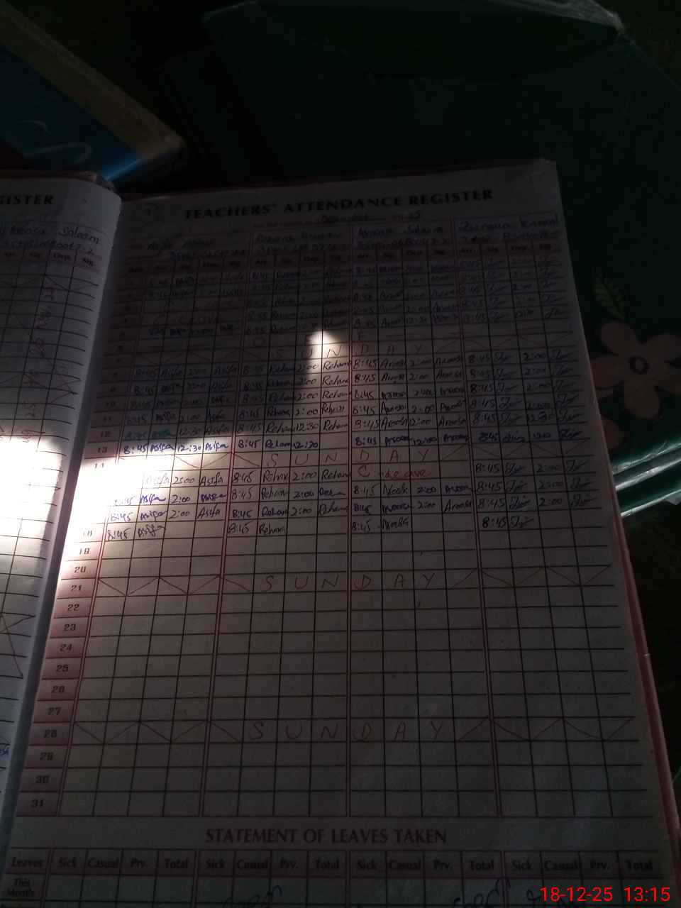 | Leave | Duty | Absent | Maternity | Medical | Ex- Pak |