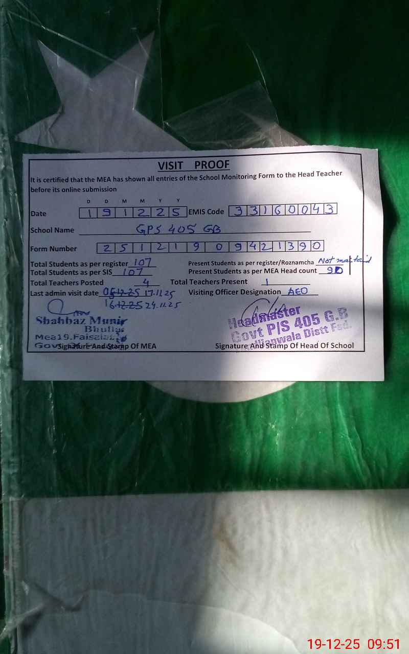 | EMIS Code: 33160043 | Name of School: GPS CHAK 405 GB TANDLIANWALA FSD | |||