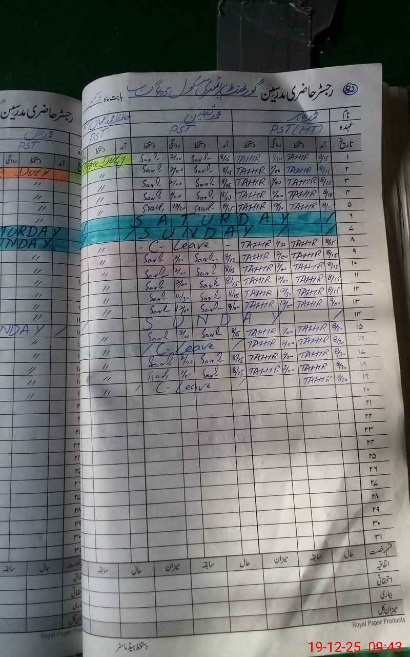 | Remarks (Use Separate Page if Required): Teacher saqlain marked causal leave but no legal proof of his online recommended leave during the time of visit. | |||||