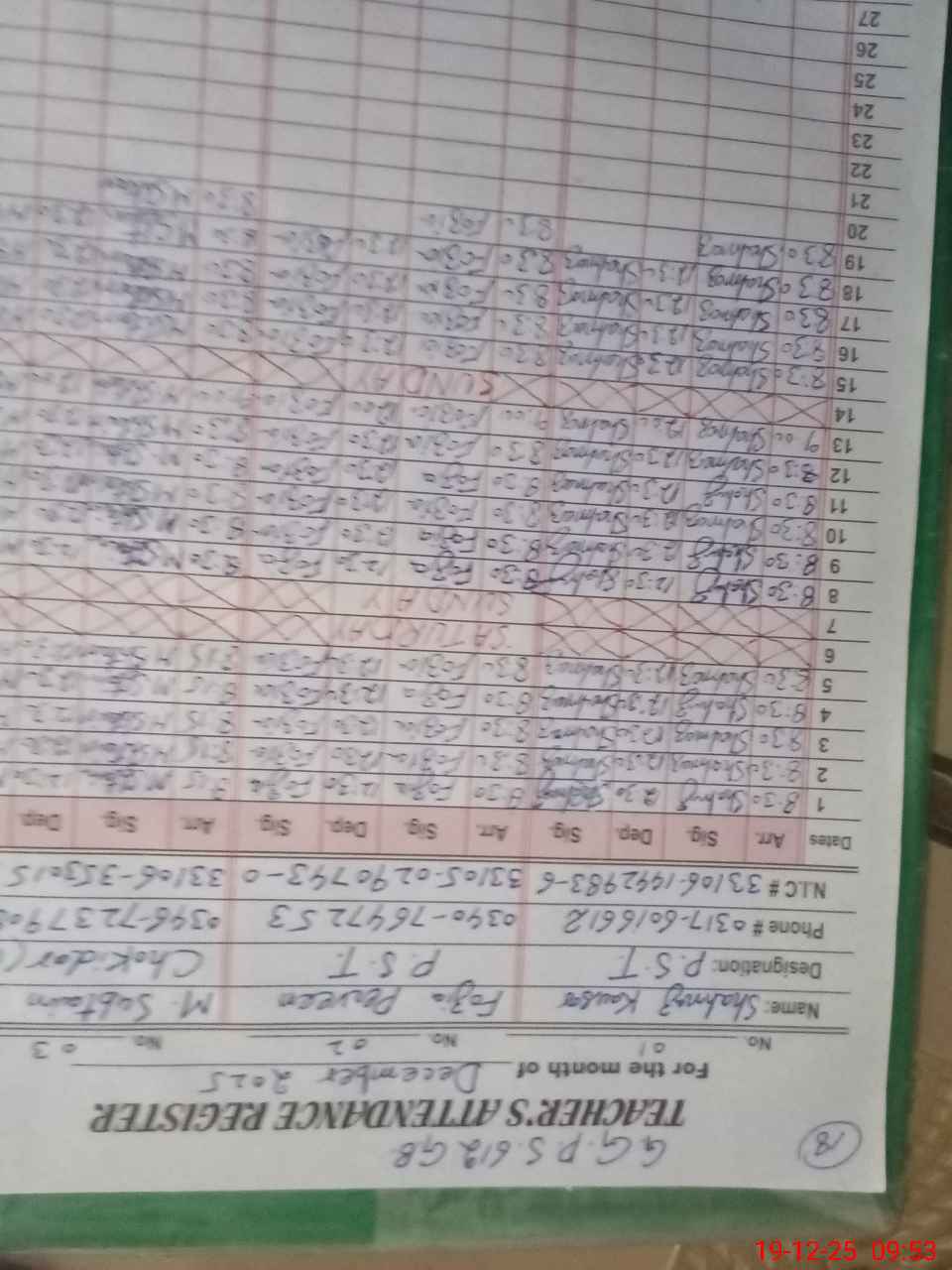 | Name: SH**** KO**** Designation: (School Headmaster's/Headmistress's) PST Phone/Cell Number: 03**** |