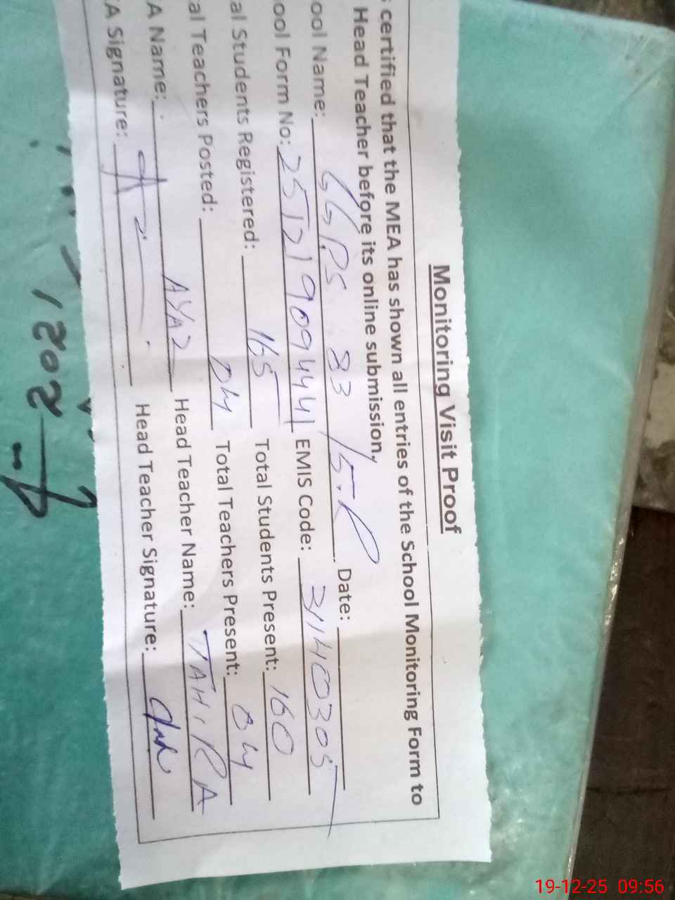 | Certified that this School was Inspected by the Undersigned MEA/DMO Today and the Information Stated Above is as Per Record. | |||||