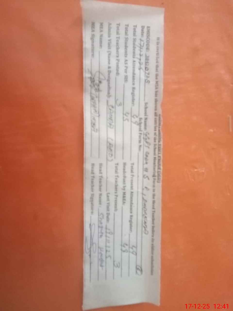 | Certified that this School was Inspected by the Undersigned MEA/DMO Today and the Information Stated Above is as Per Record. | |||||