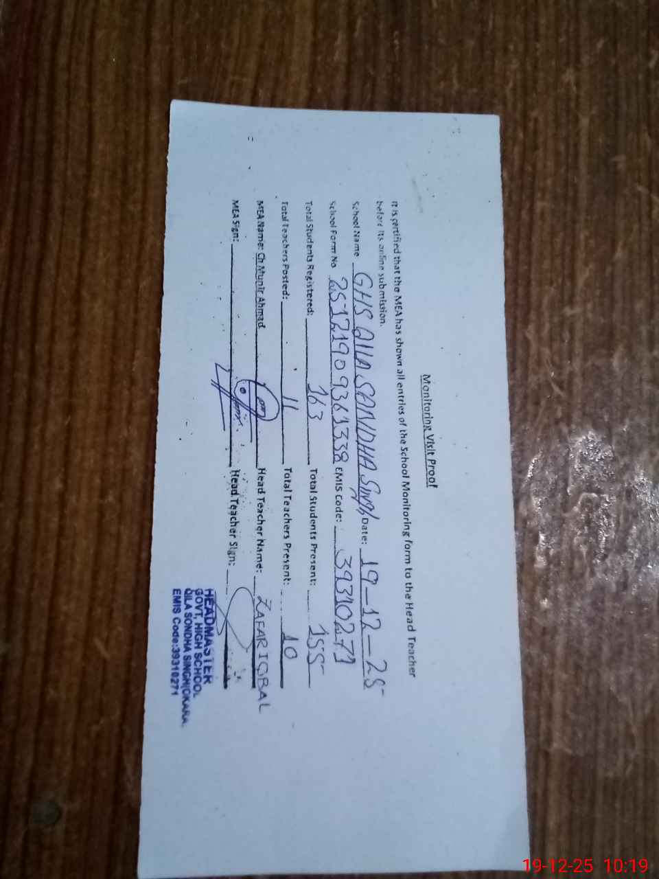 | EMIS Code: 39310271 | Name of School: GHS QILA SONDHA SINGH | |||