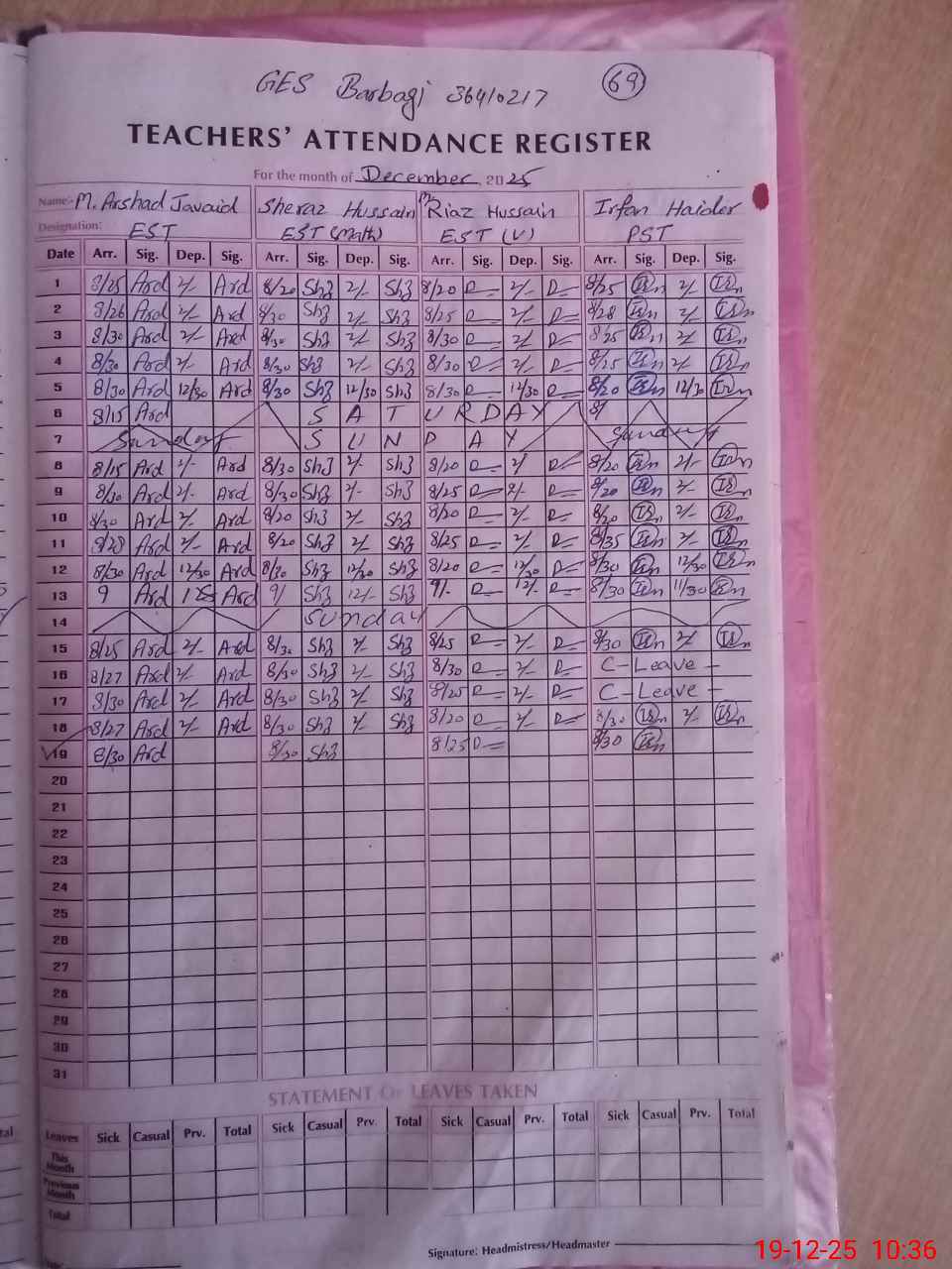 | EMIS Code: 36410217 | Name of School: GES BARBEGY, P/O QATAL PUR, SARAI SIDHU | |||