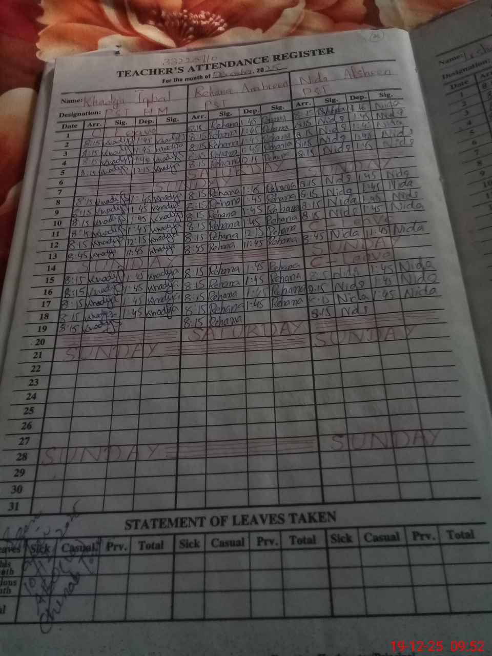 | 33**** | Sh**** | PST Arts | Regular | 3 | 0 | 0 | 0 | 0 | 0 | 0 | 0 | 3 | Absent (Un-Authorized) |
