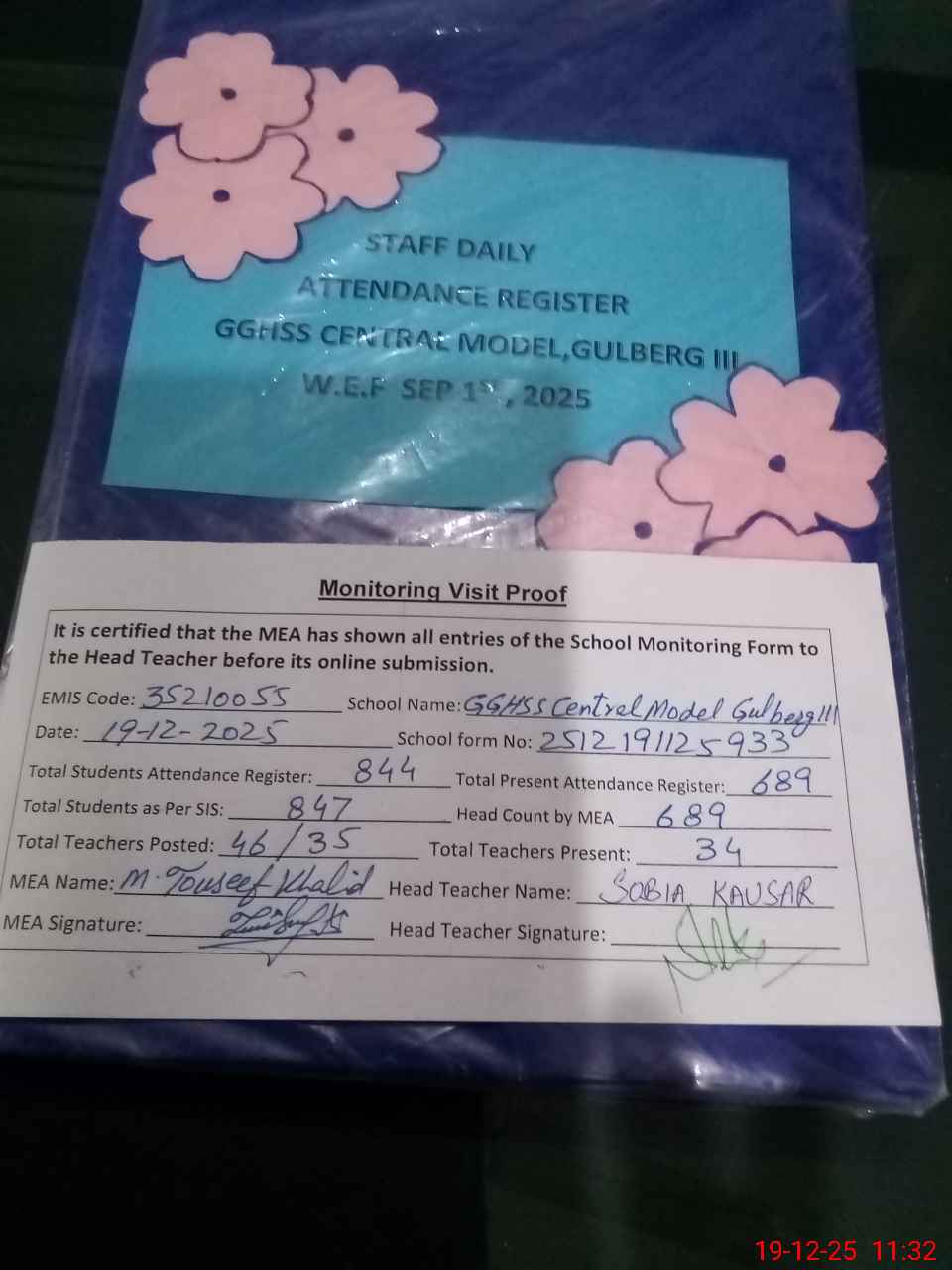 | EMIS Code: 35210055 | Name of School: GGHSS CENTRAL MODEL GULBERG-III | |||
