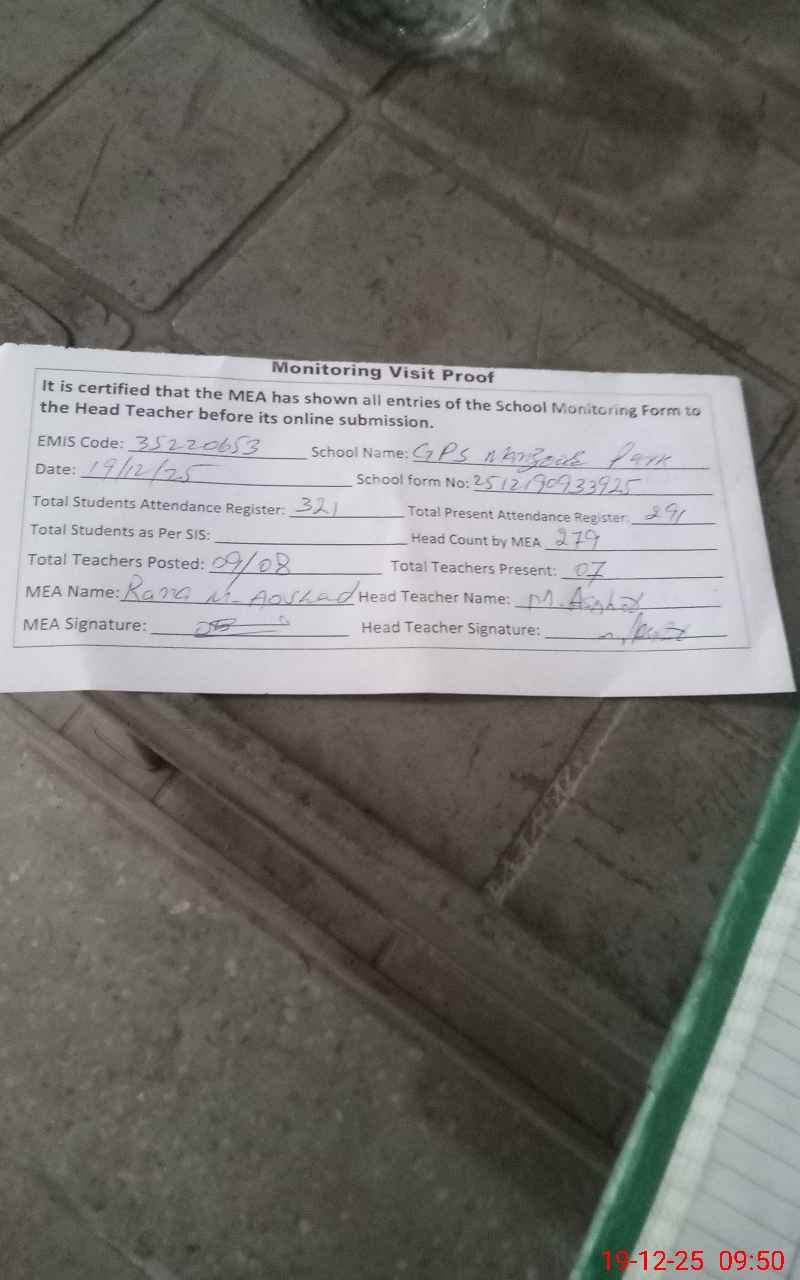 | EMIS Code: 35220653 | Name of School: GPS MANZOOR PARK BUND ROAD SHAFIQUE ABAD | |||