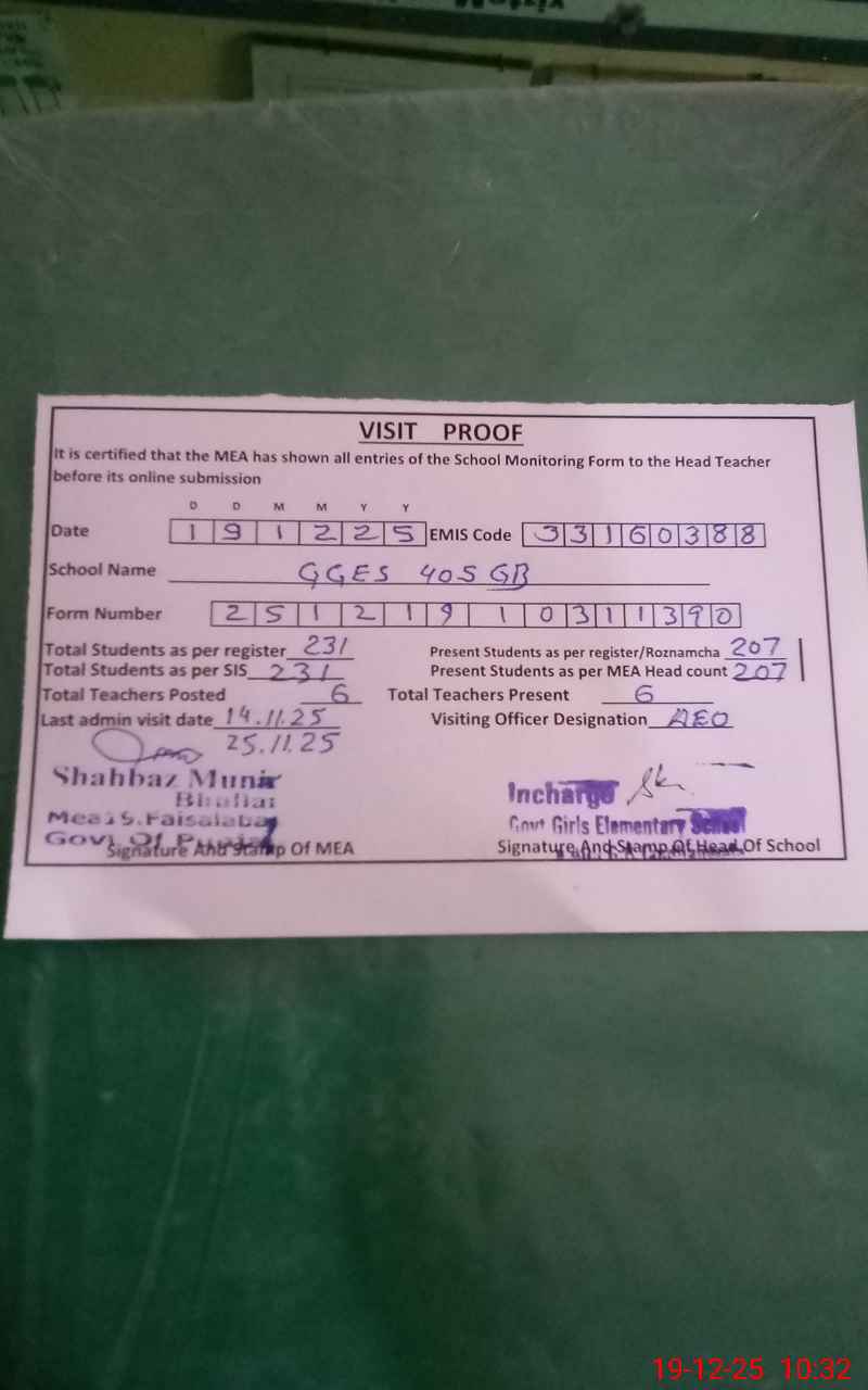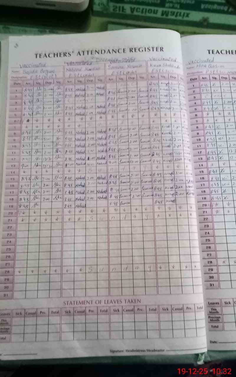 | Attendance Register | Head Teacher | MEA with School | Visit Proof |