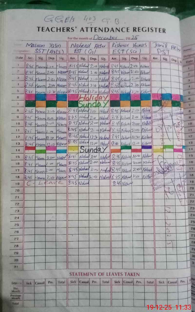 | 33**** | Az**** Fa**** | CHOKIDAR | 0 | 9 | 0 | 0 | 0 | 0 | 0 | 0 | 0 | Other | |