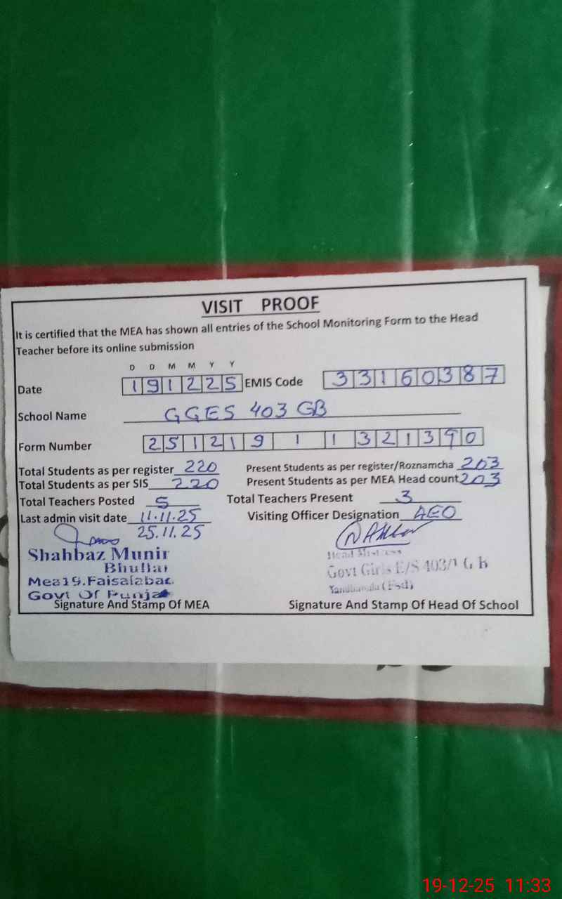 | EMIS Code: 33160387 | Name of School: GGES 403 GB I | |||