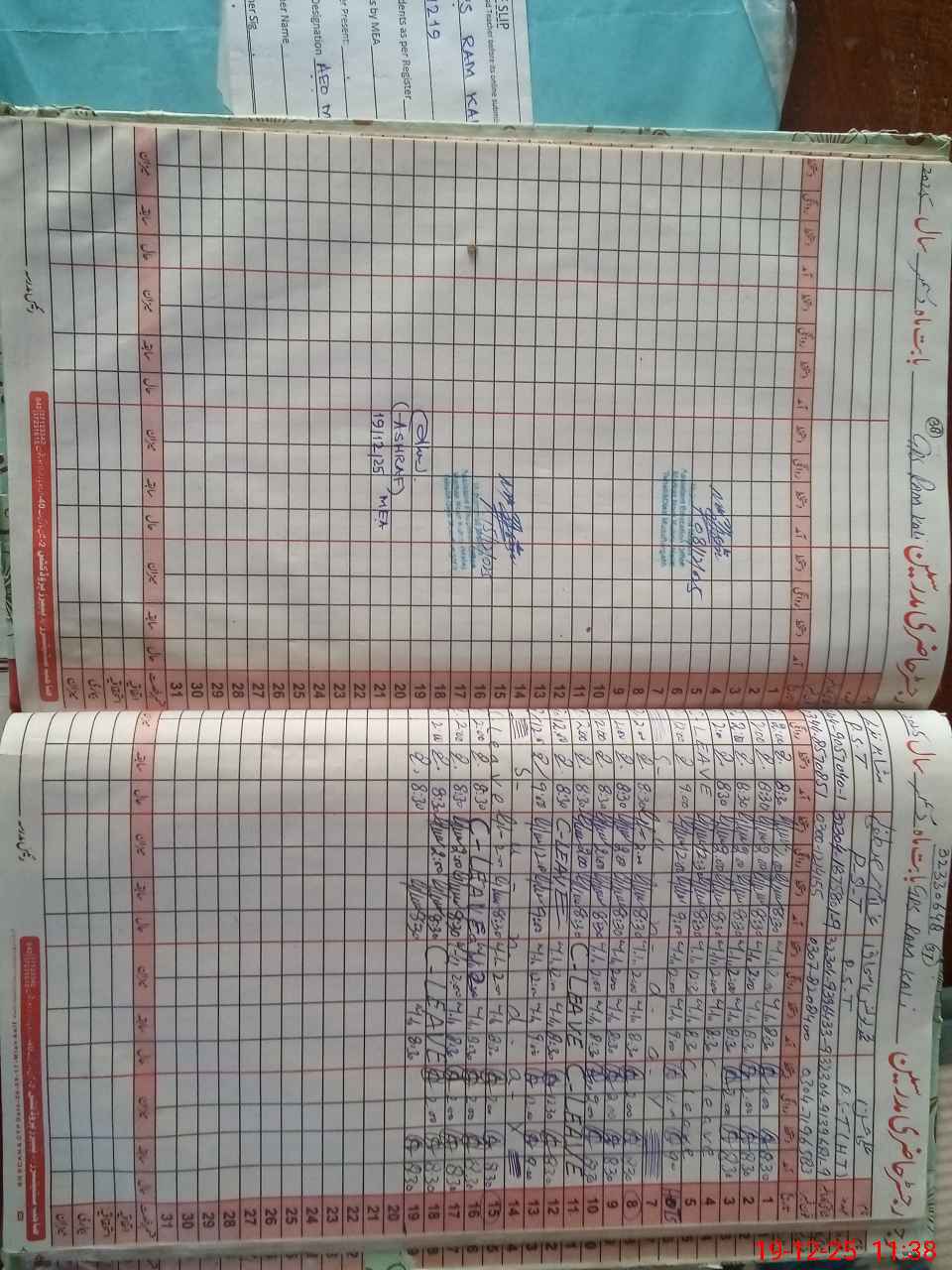 | CNIC | Full Name | Designation | R/C | Absence During Last Calender Month |