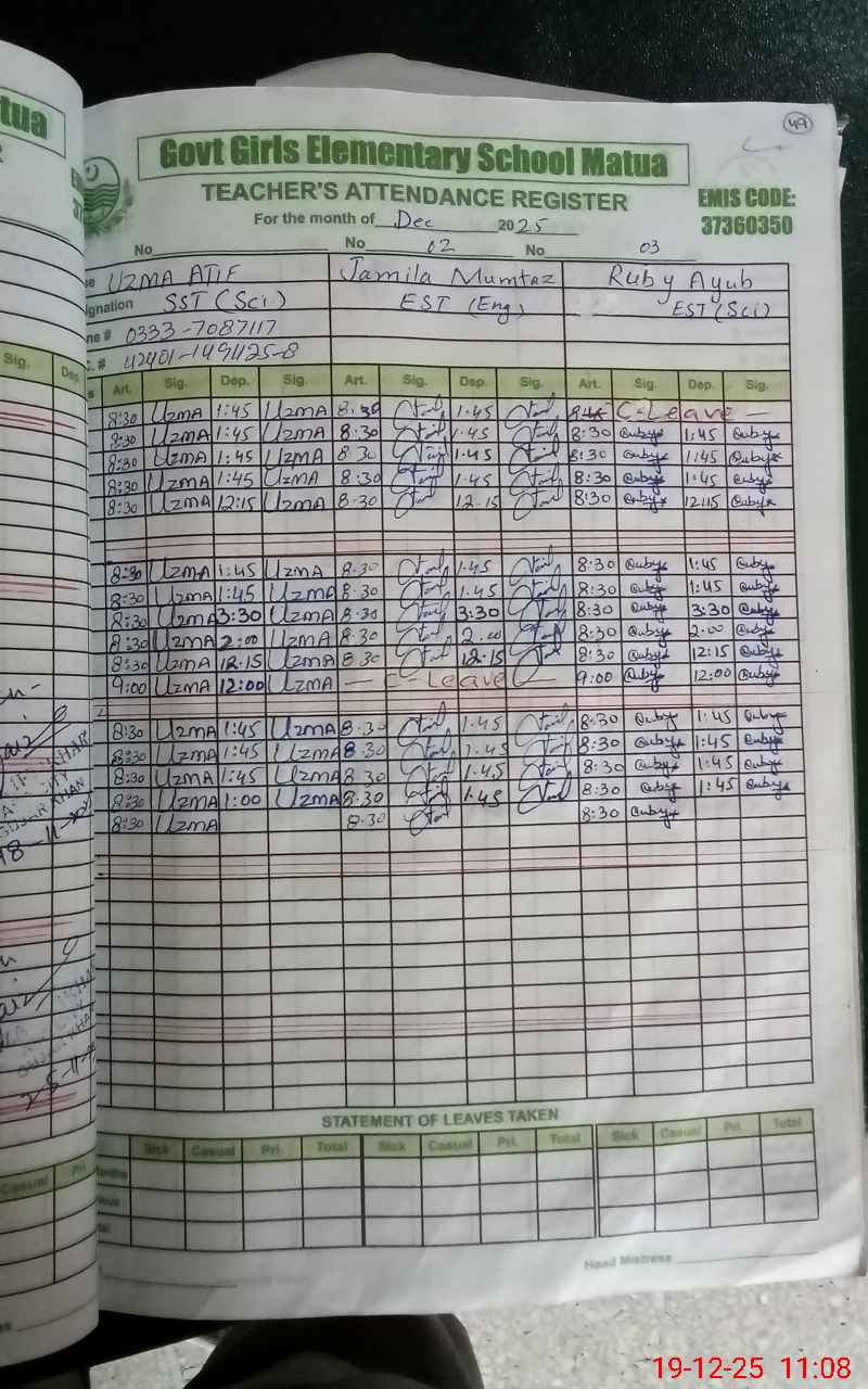 | Name: UZ**** AT**** Designation: (School Headmaster's/Headmistress's) SST. SCI Phone/Cell Number: 03**** |