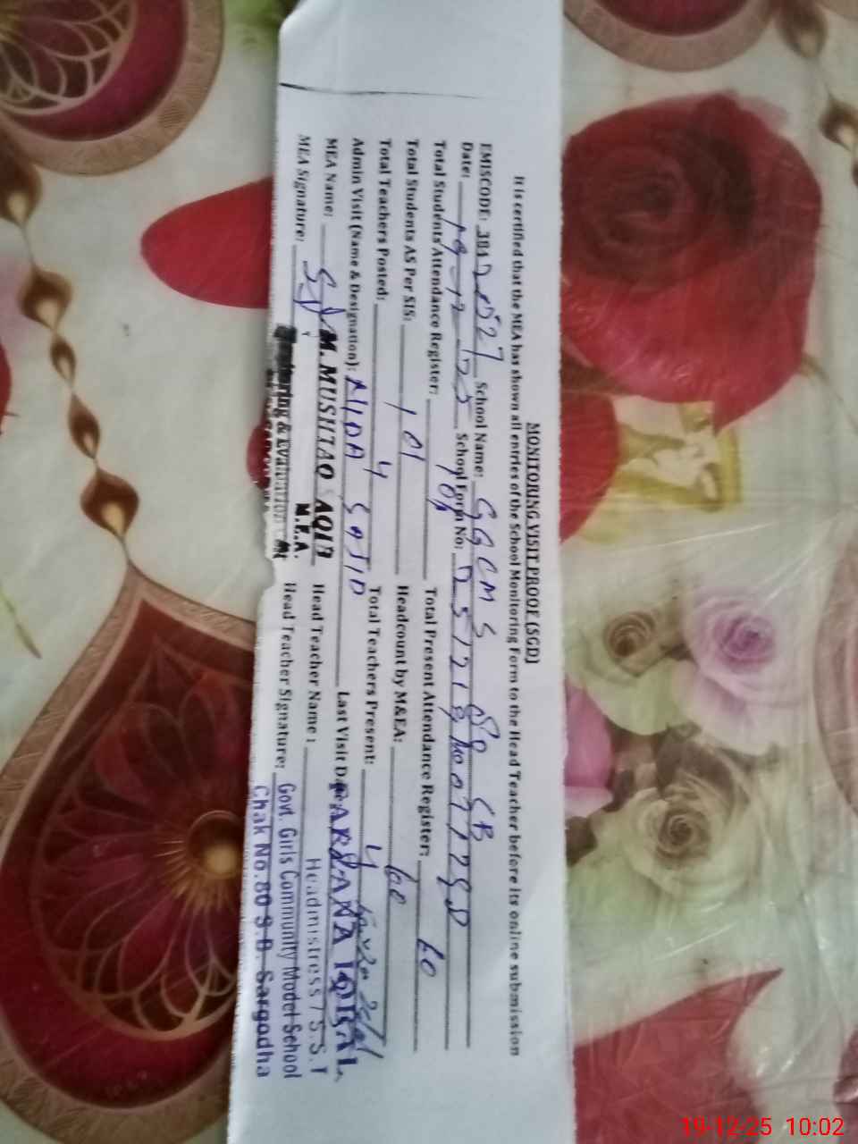 | EMIS Code: 38420527 | Name of School: GGCMS CHAK NO 80 SB | |||
