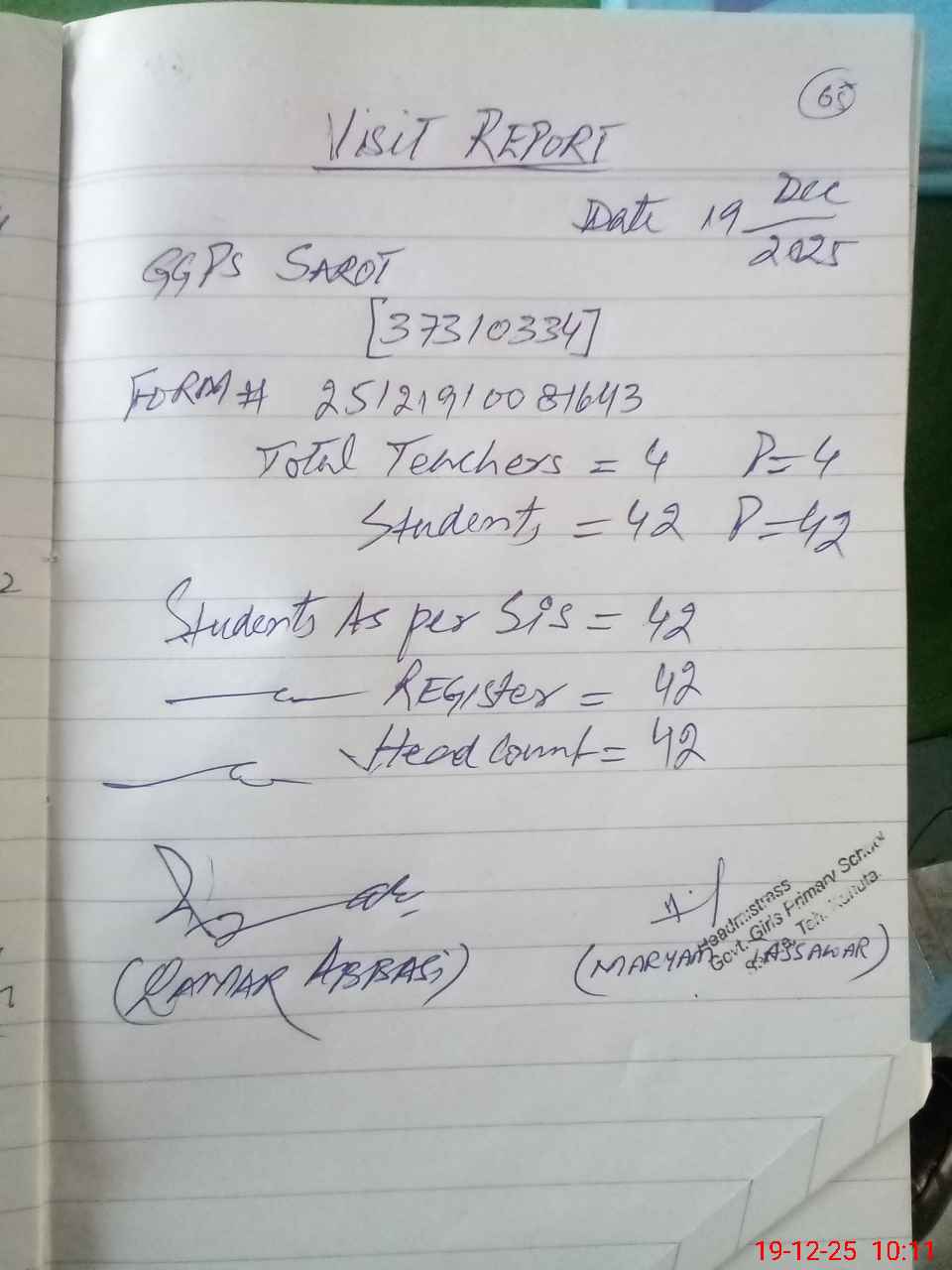 | EMIS Code: 37310334 | Name of School: GGPS SAROT | |||