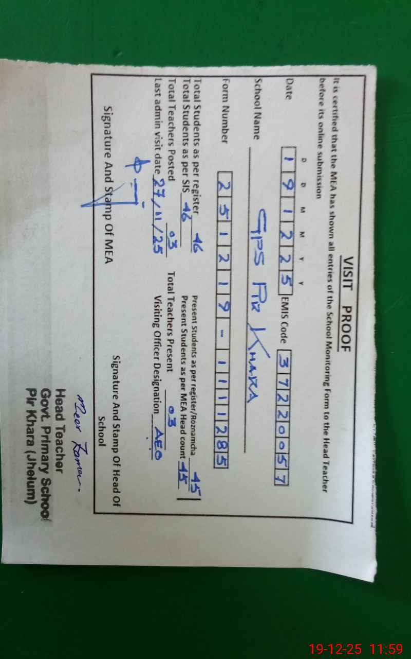 | EMIS Code: 37220057 | Name of School: GPS PIR KHARA | |||